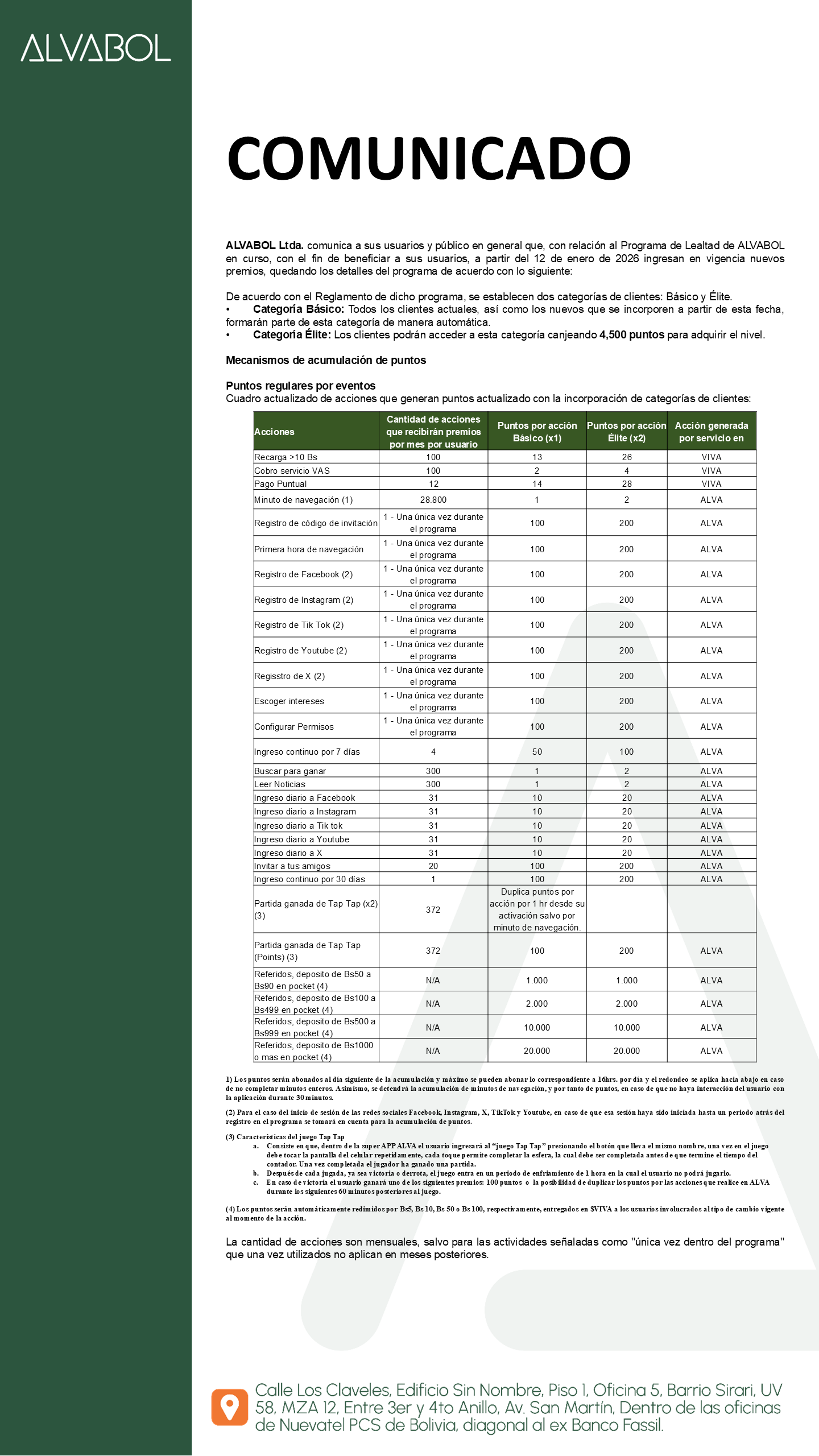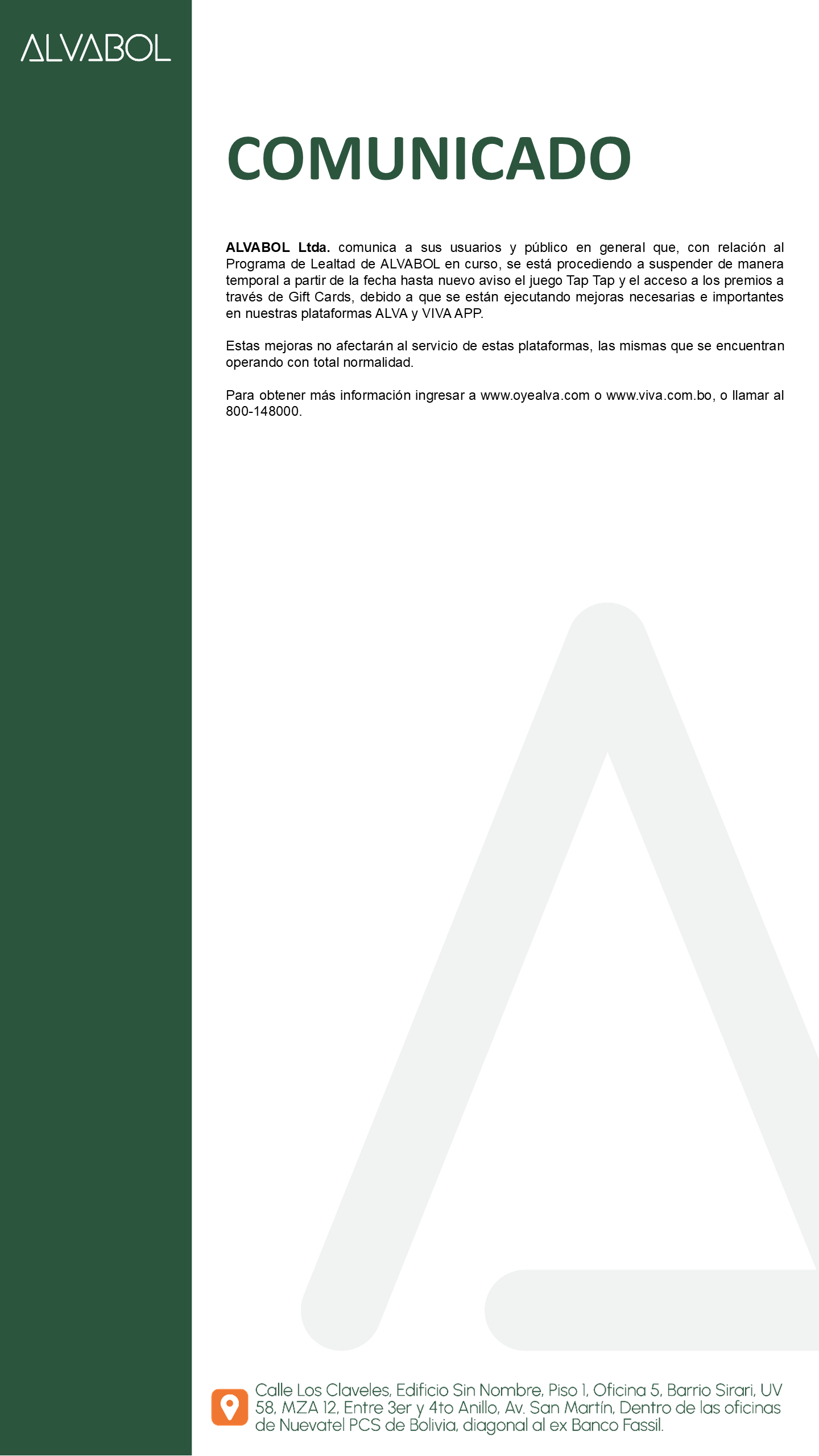 Comunicado ALVABOL- Suspensión temporal Tap tap - y Gift Cards