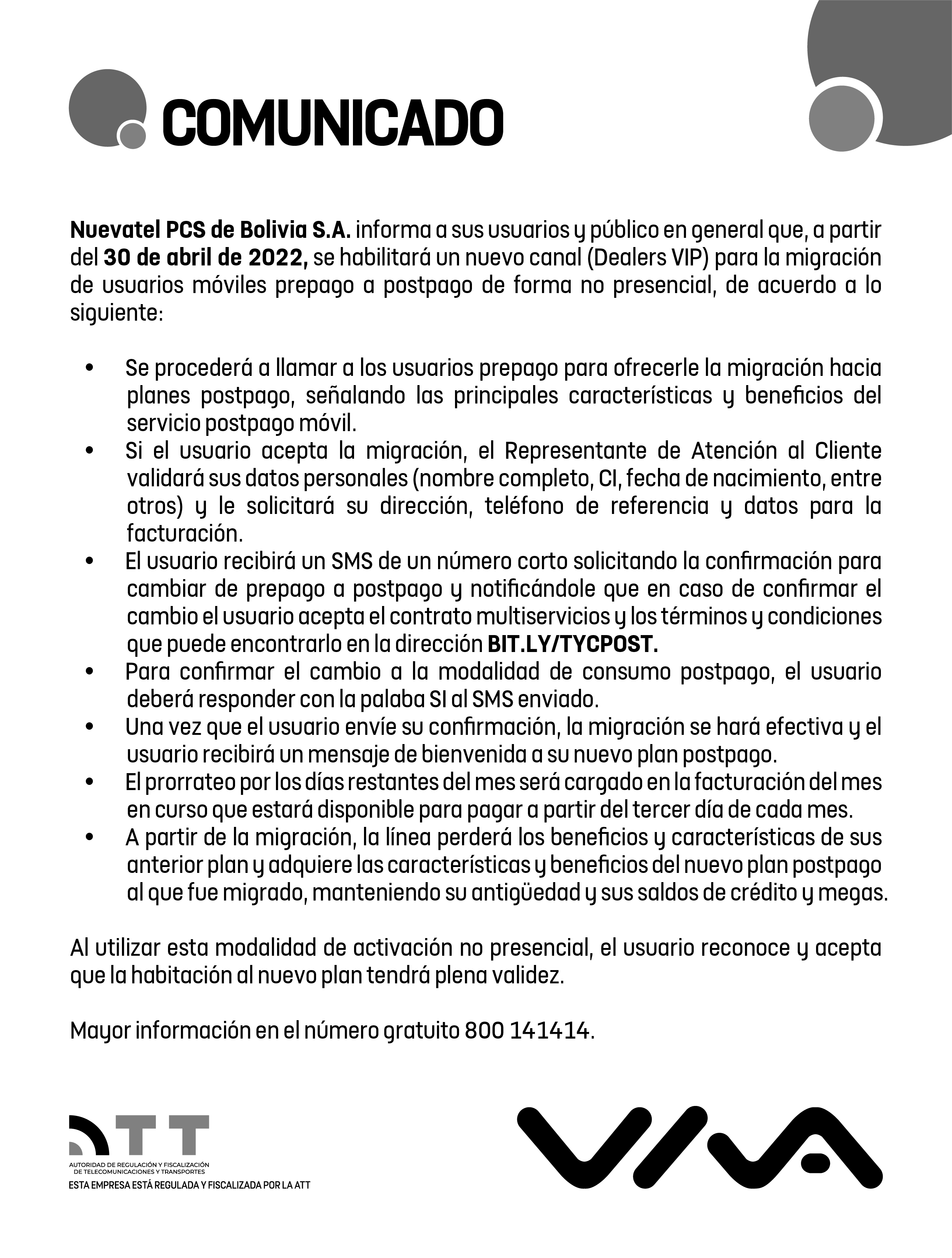 VIVA Comunicados Fecha de publicación: 28-09-2023 Modificación planes postpago servicio móvil VER COMUNICADO Fecha de publicación: 28-09-2023 Trabajos mantenimiento 05 y 06 octubre 2023 VER COMUNICADO Fecha de publicación: 28-09-2023 Modificación planes postpago servicio móvil VER COMUNICADO Fecha de publicación: 25-09-2023 Expiración de MB y crédito VER COMUNICADO Fecha de publicación: 25-09-2023 Modificación servicio de valor agregado HYPE GAMES VER COMUNICADO Anterior1 ...107108109 110111... 163 Siguiente