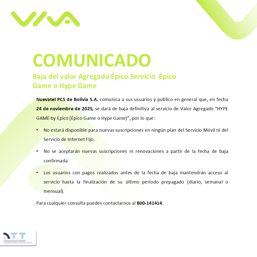 Baja definitiva Servicio VAS “HYPE GAME by Epico (Épico Game o Hype Game)”
