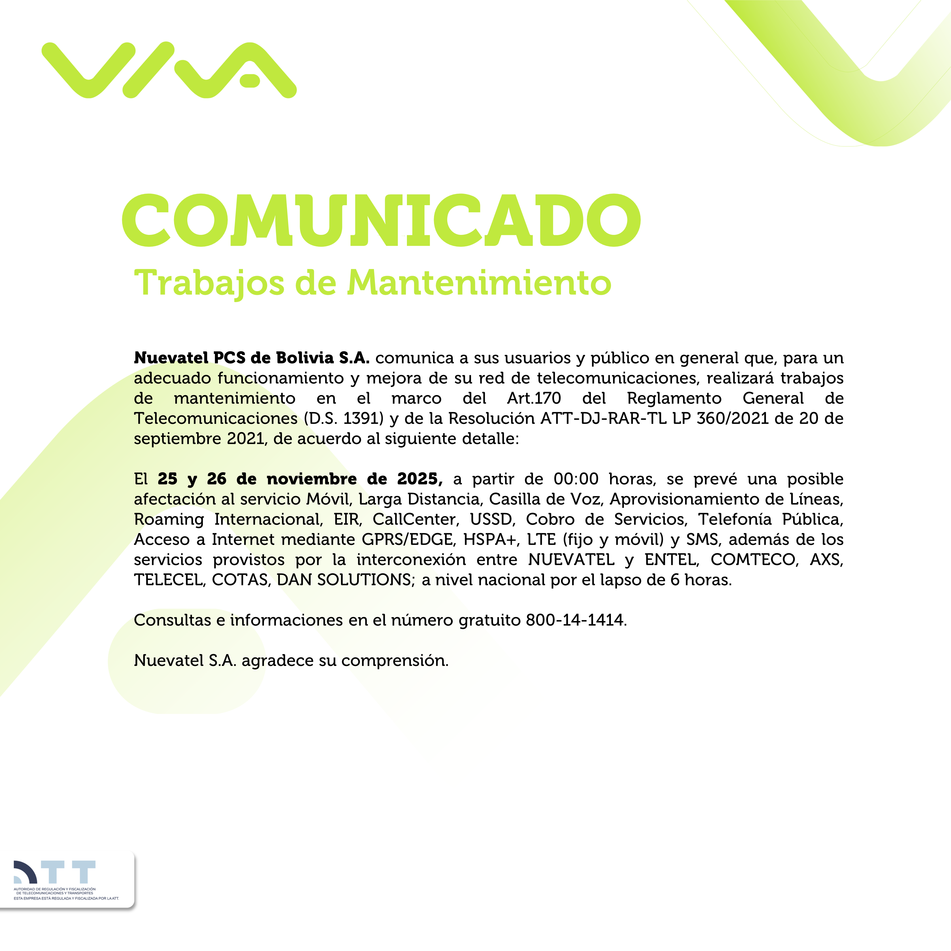 Trabajos de Mantenimiento 25 y 26 de noviembre de 2025