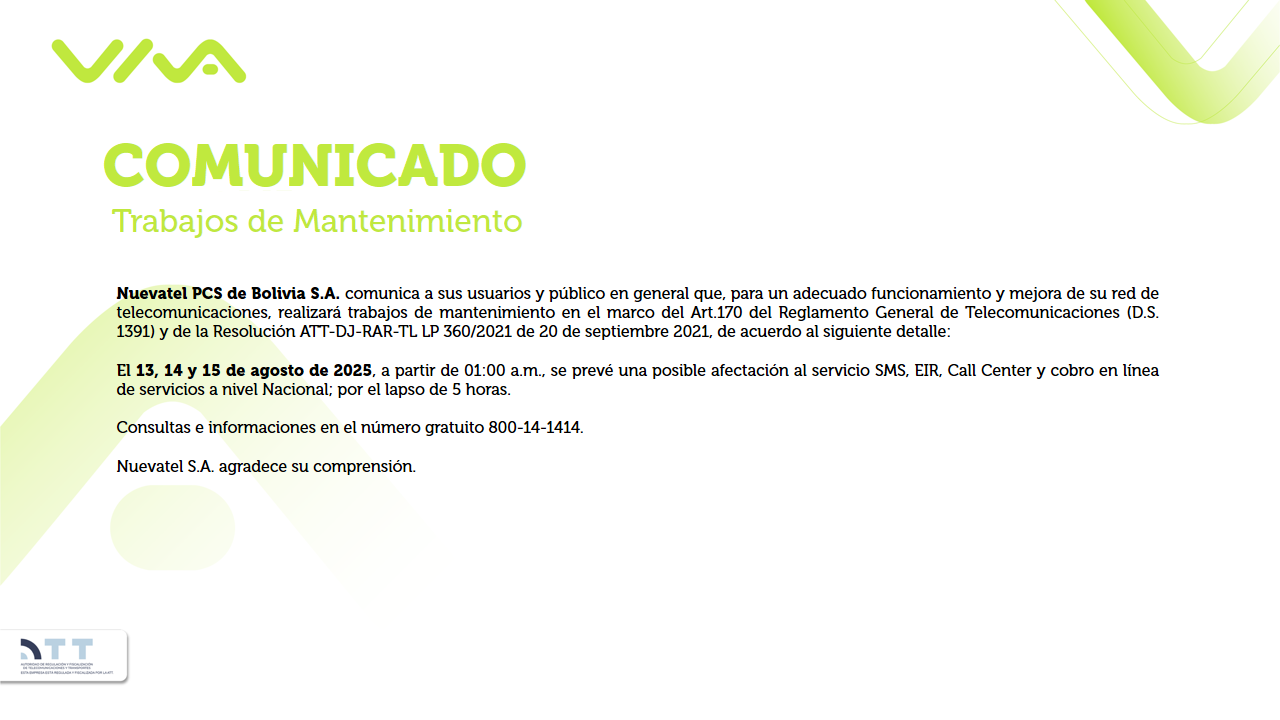 TRABAJOS DE MANTENIMIENTO 14 y 15 DE AGOSTO DE 2025