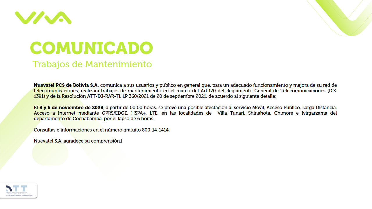 TRABAJOS DE MANTENIMIENTO 5 Y 6 DE NOVIEMBRE DE 2025
