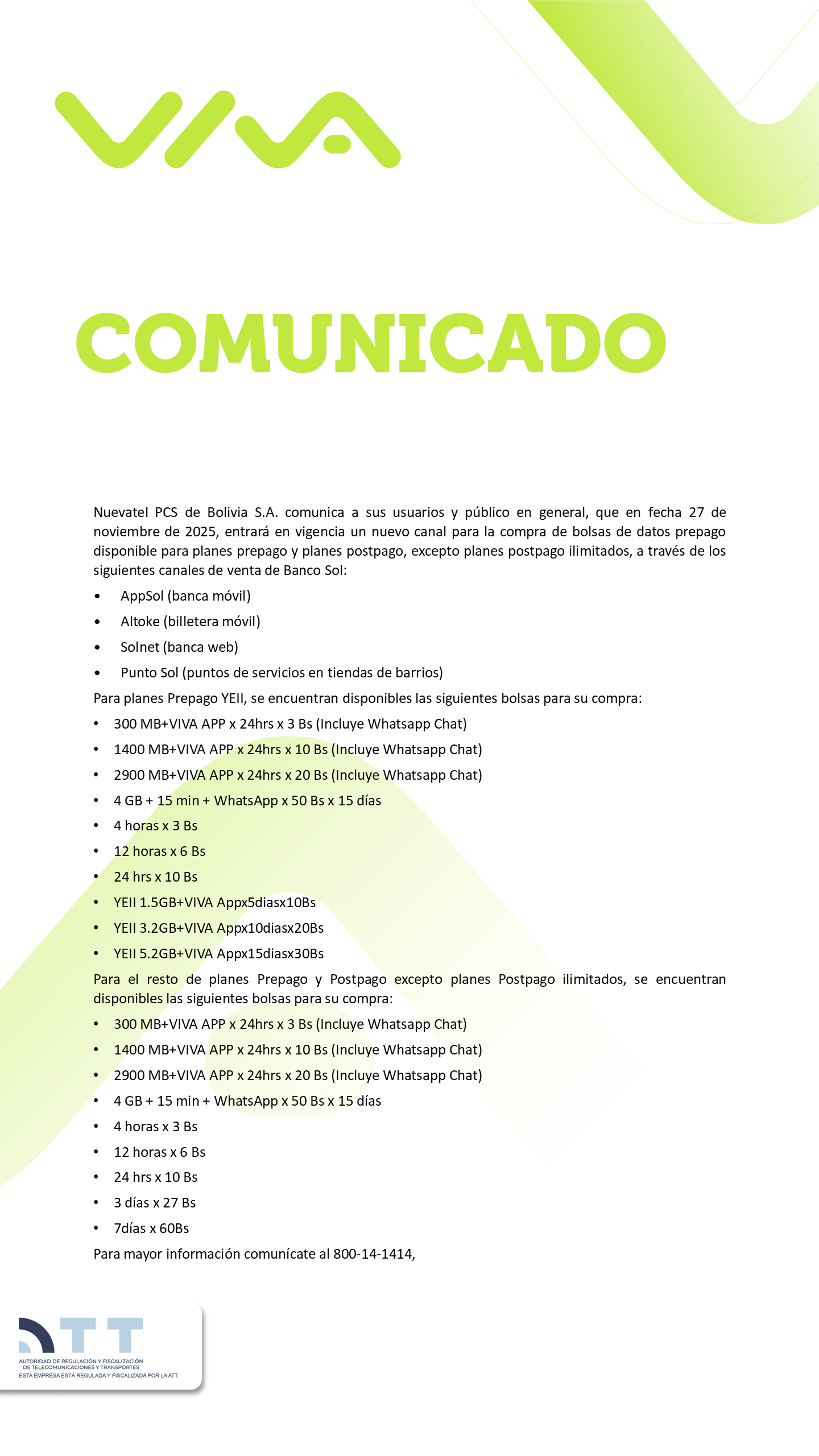 Habilita un nuevo canal para compra de bolsas de datos prepago