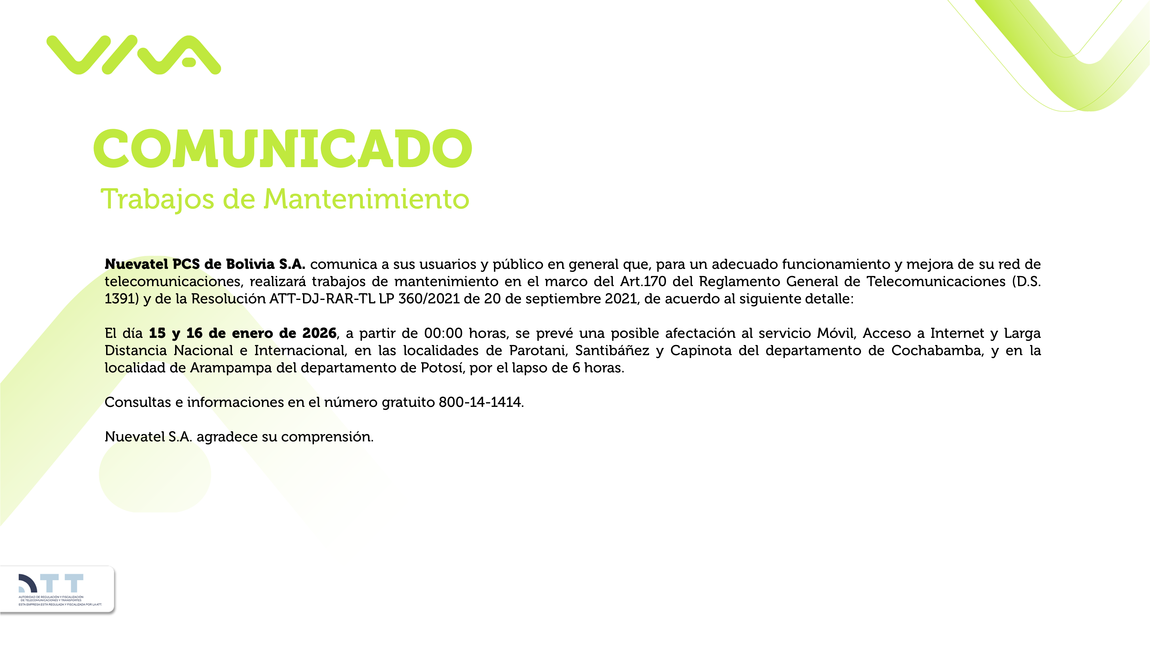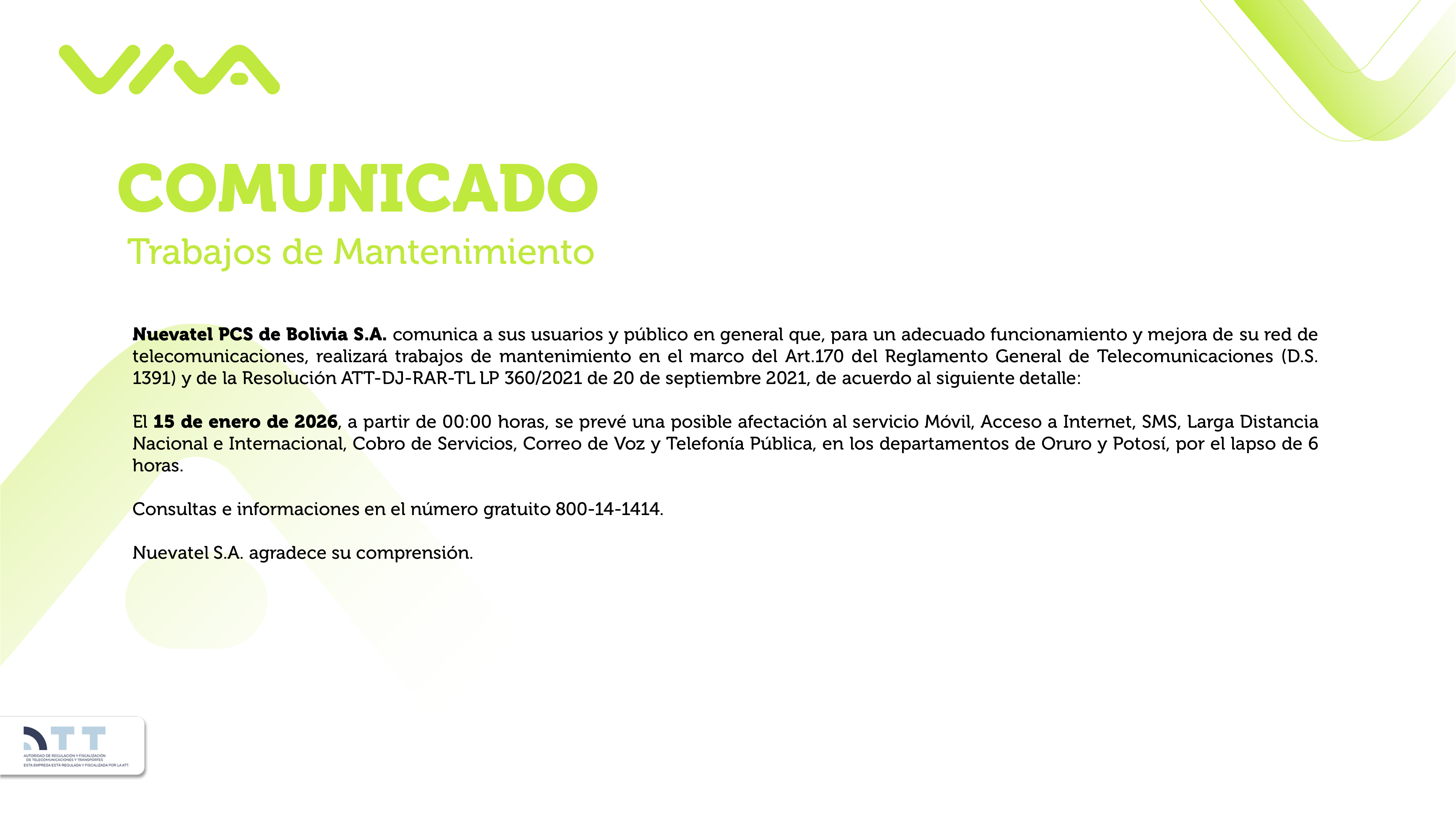 Trabajos de Mantenimiento 08, 09 y 10 de enero de 2026