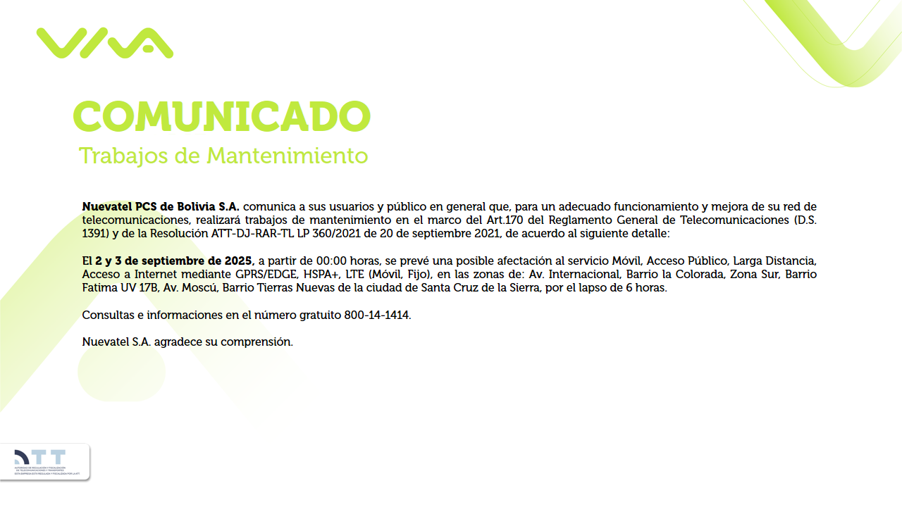 TRABAJOS DE MANTENIMIENTO 26, 27, 29 DE AGOSTO Y 2, 3 DE SEPTIEMBRE DE 2025