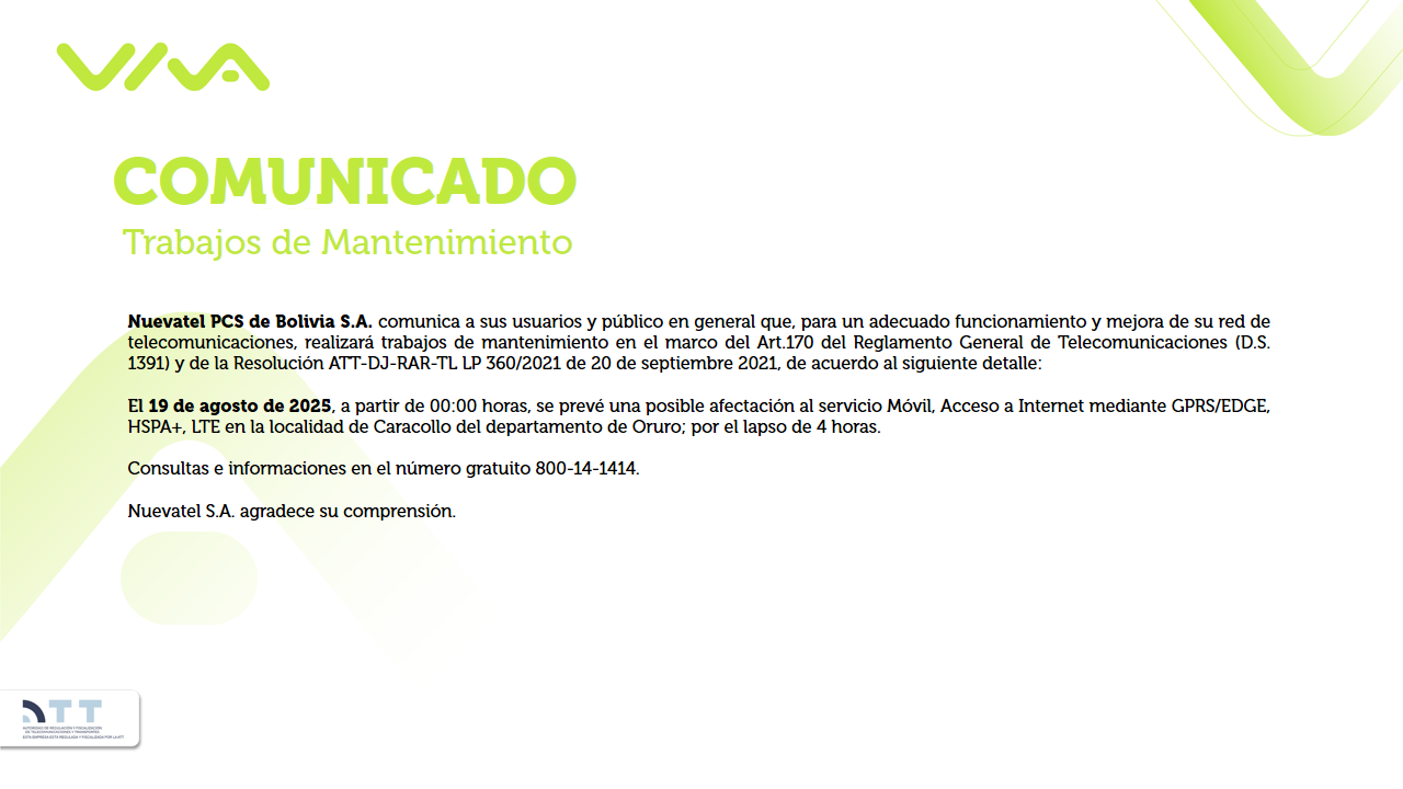 TRABAJOS DE MANTENIMIENTO 19 DE AGOSTO DE 2025